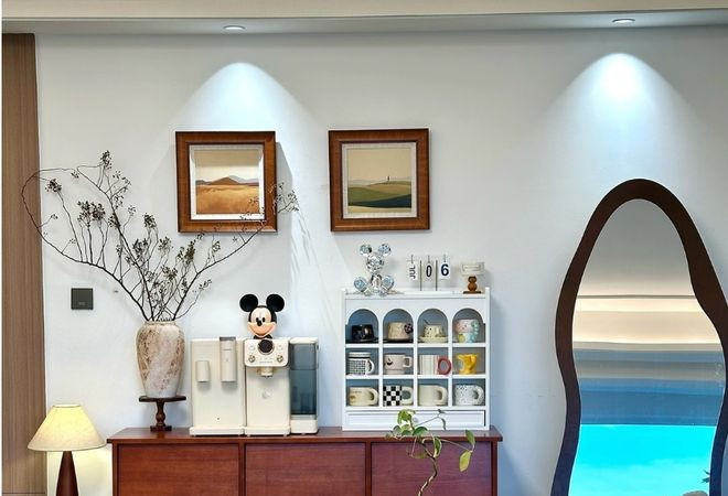 而在周围的区域点缀一两件真正的艺术品,摄影作品或者是一盏设计感的落地灯。