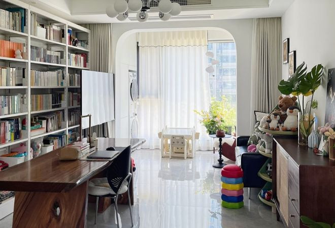整面书墙首先是功能上的巨变,从纯装饰变成了家庭书馆,能够营造沉浸式的阅读氛围,特别有益孩子的成长。