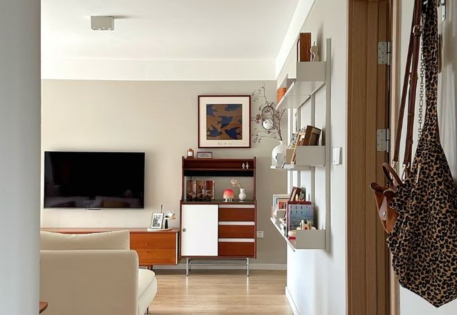一面仅用于装饰的厚重电视墙,不仅占用了空间,更让客厅显得很局促,进门看到的不是一面墙,而是一个被浪费的,有无限可能的空间。