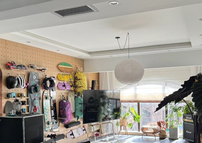 不装传统电视背景墙,还可以把这个区域设计成多功能设备墙。